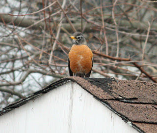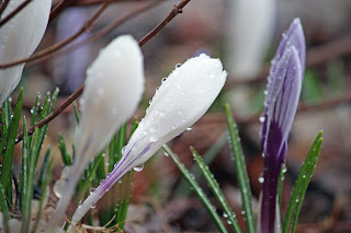 The robins have been around for awhile, the crocus' have been up for awhile, but yesterday the air was full of spring with the sight and sound of birds. The tress and the few bare patches of grass were teaming with birds. The crocus' were closed because the sun wasn't out. The tulips are peeking up through the ground and I'm starting to see bare spots in the garden. There is still a fair amount of snow but I'm getting anxious to start cleaning out the gardens and digging in the soil.